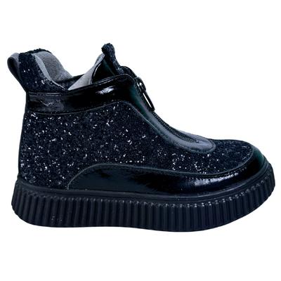 321 Kız Hakiki Deri Fermuarlı Ortopedik Bot Siyah